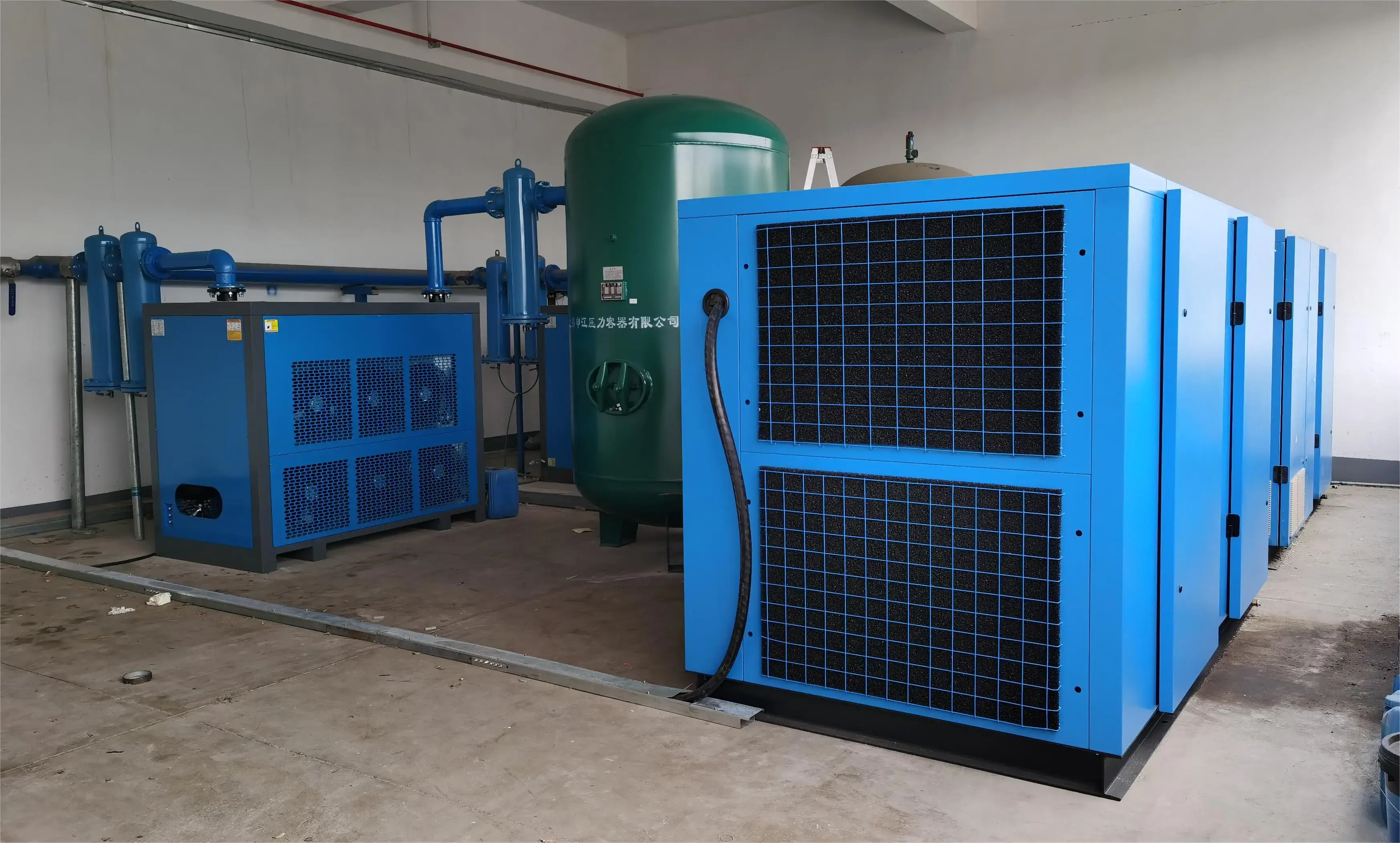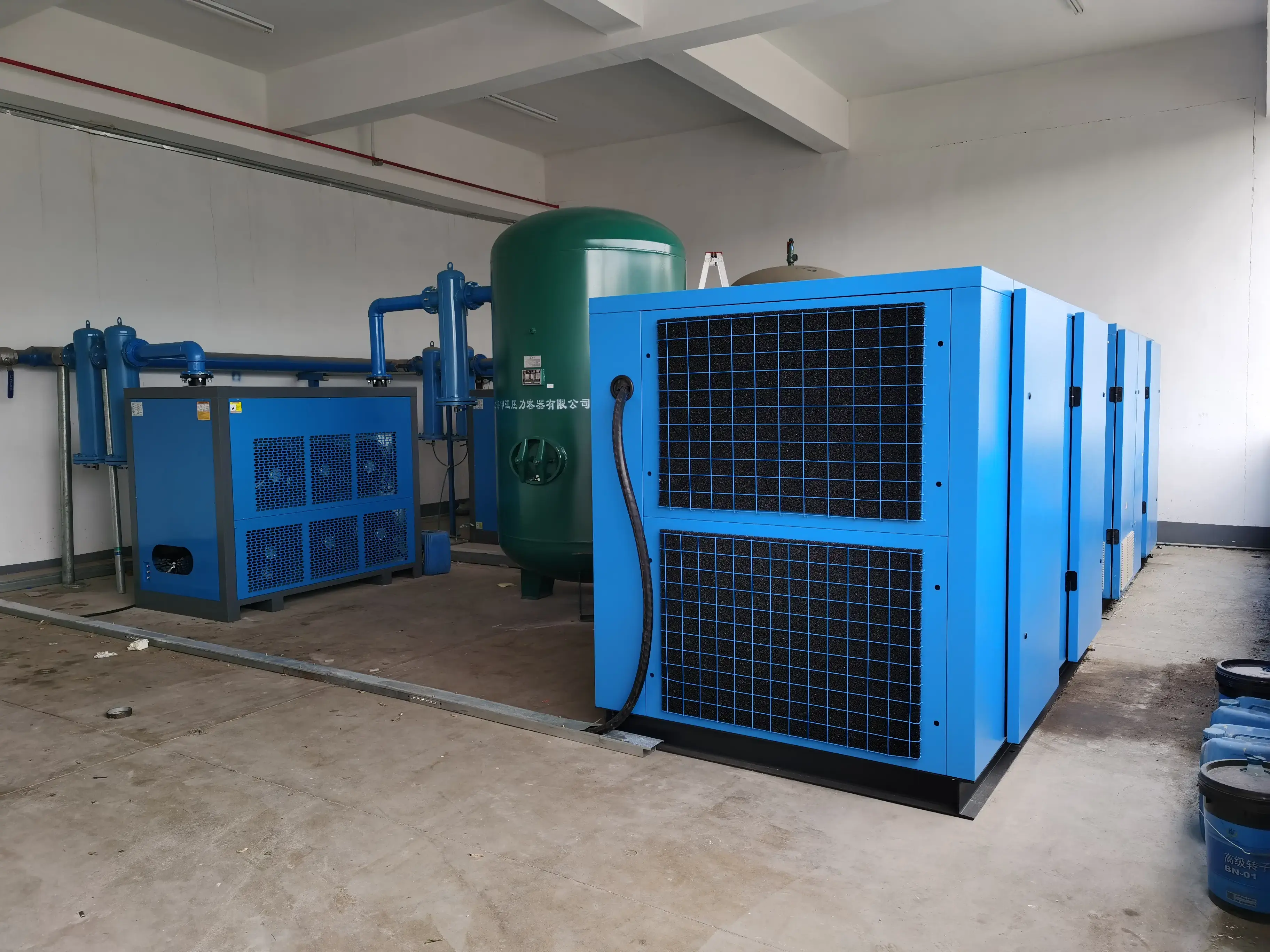 產品出廠時,機器中已充滿壓縮機油,若安裝就位后,接通電源,即可投入運行,通過帶背光的液晶屏幕,清晰的現(xiàn)實機器的運行狀態(tài)。